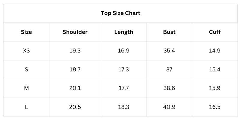 Size Chart (Inches):