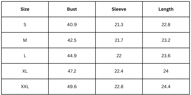 Size Chart(inches):