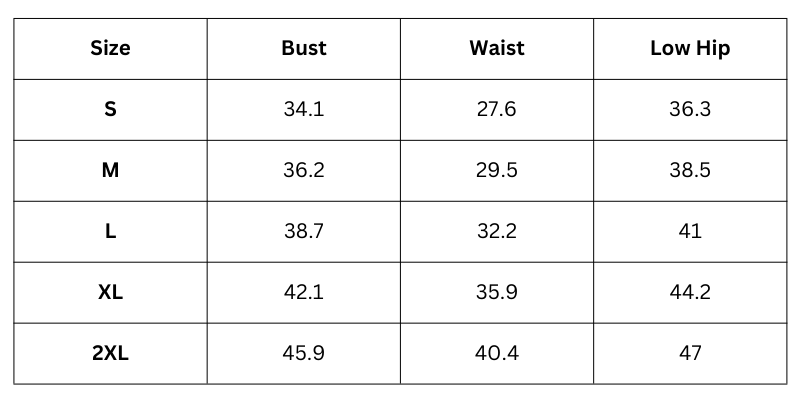 Size Chart (Inches):
