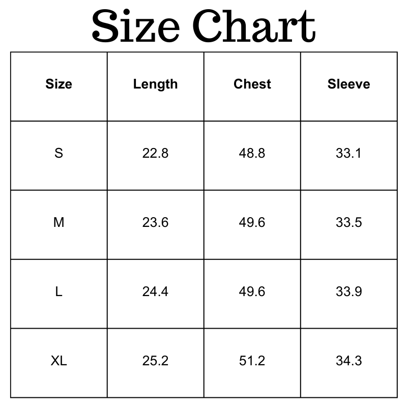 Size Chart (inches):