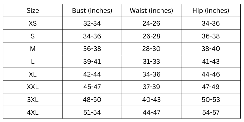 Size Measurements (Inches):