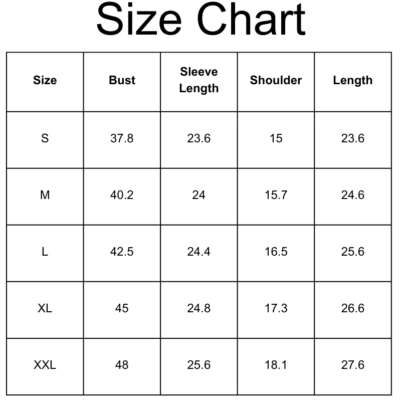 Size Chart(inches):