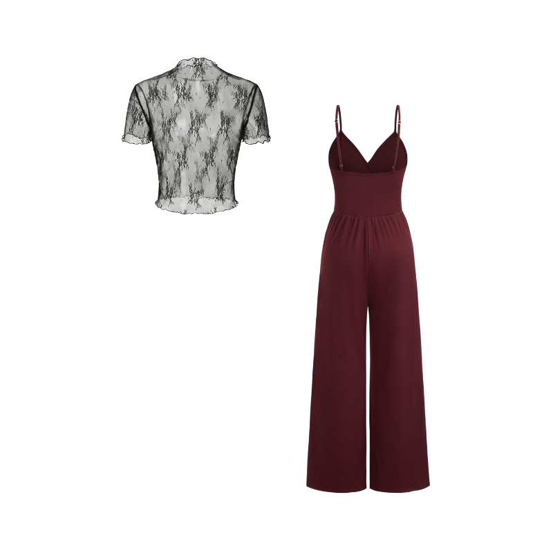 Elevate your style with the Lace Tee Two-Piece Jumpsuit Set, a great blend of sophistication and comfort. This set features a delicate lace tee paired with a jumpsuit, creating a versatile outfit. Ideal for casual outings or dressy occasions, it offers a flattering fit and effortless elegance. Made from high-quality materials, this ensemble ensures comfort throughout the day.