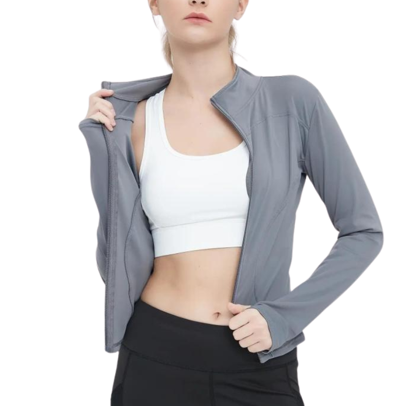 Long Sleeve Fitted Jacket With Zip Closure