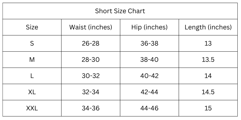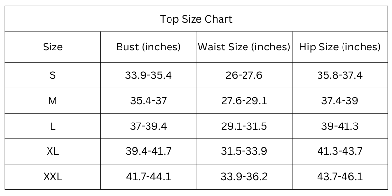 Size Chart (inches):