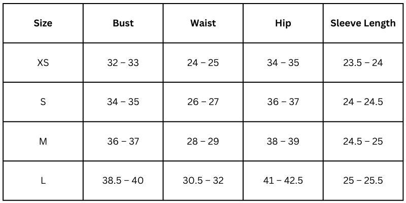 Size Chart(inches):