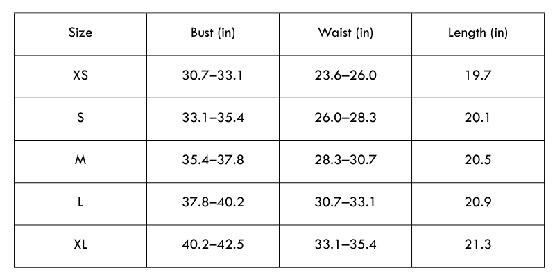 Size Chart(inches):
