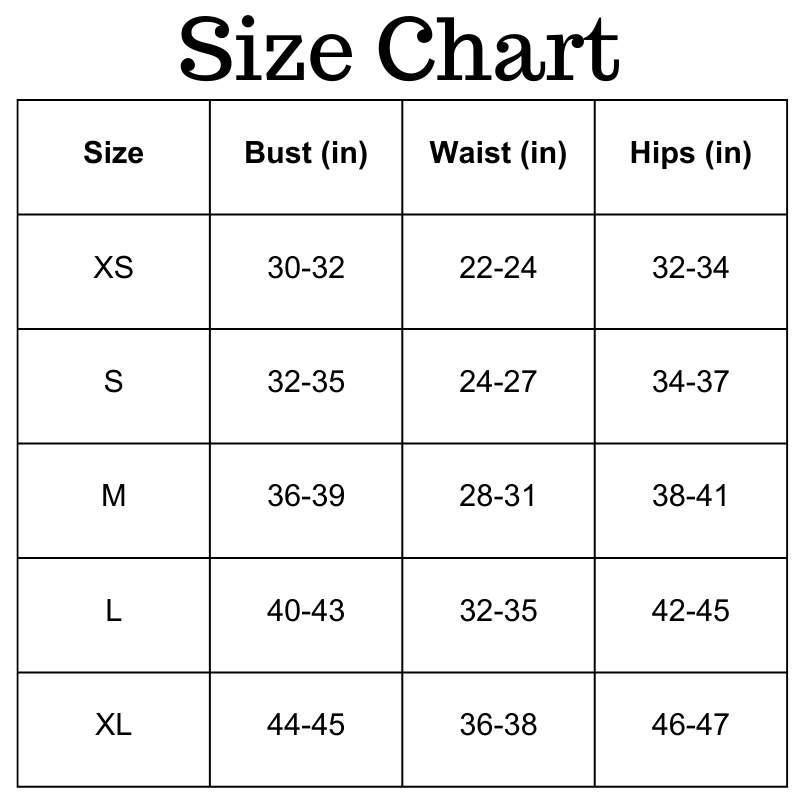 Size Chart (Inches):