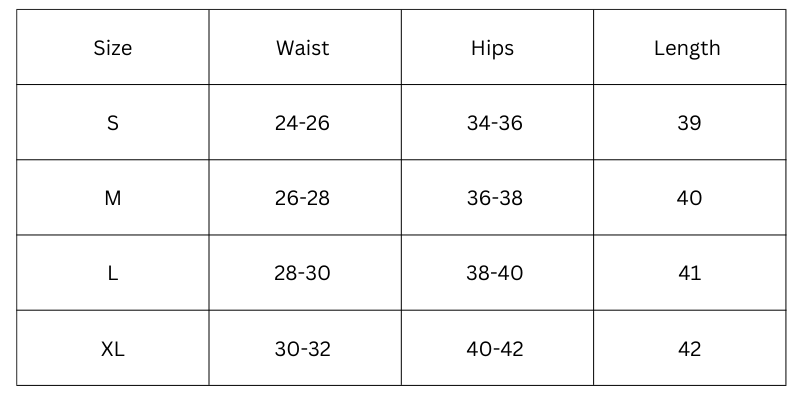 Size Chart(inches):