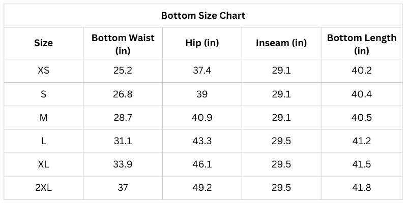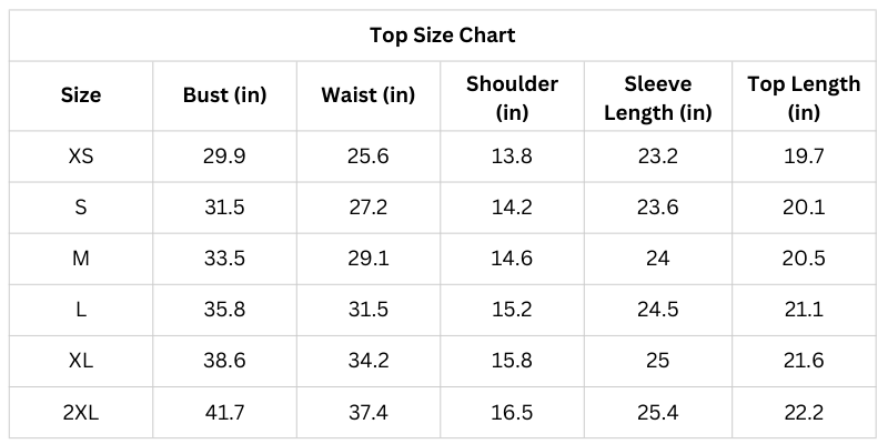 Size Chart (Inches):