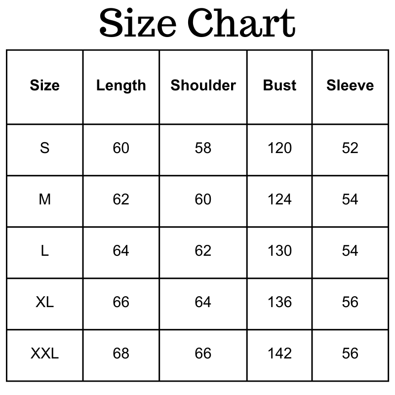 Size chart(inches):
