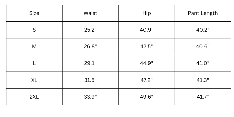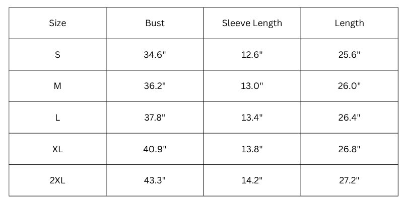 Size Chart (inches):