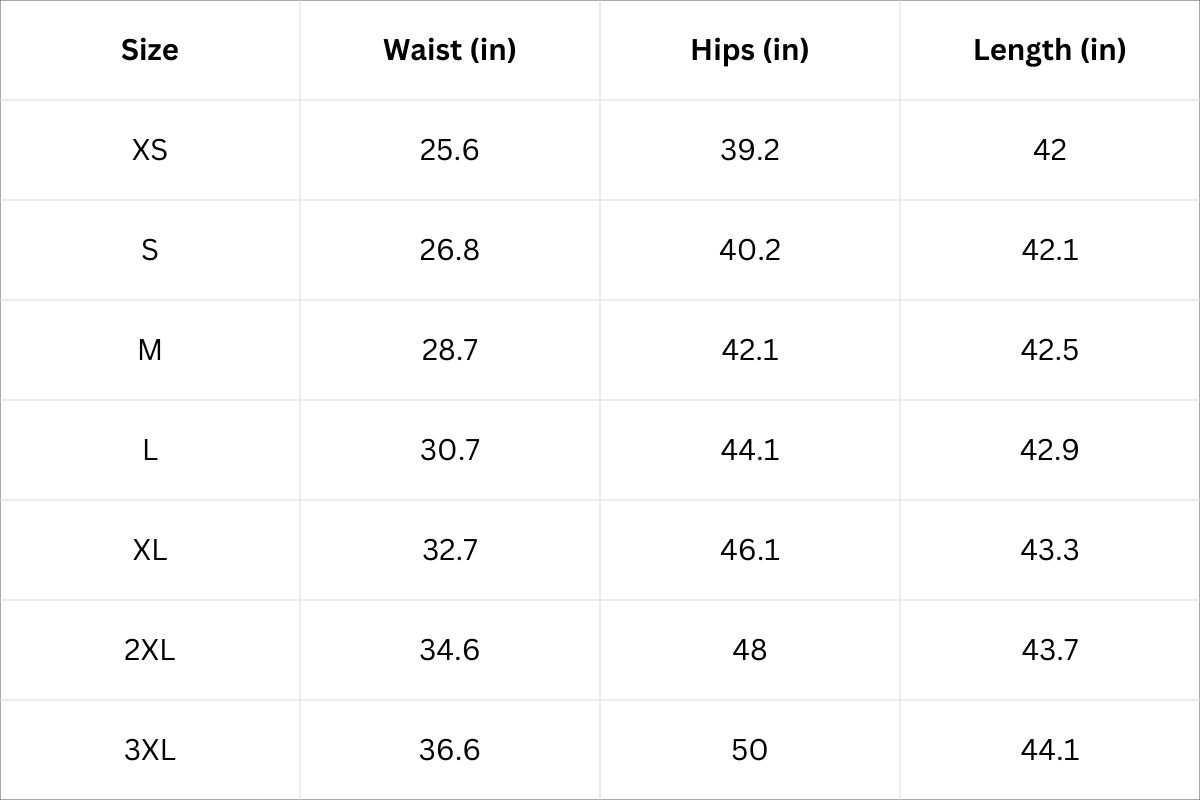 Pants Size Chart (Inches):