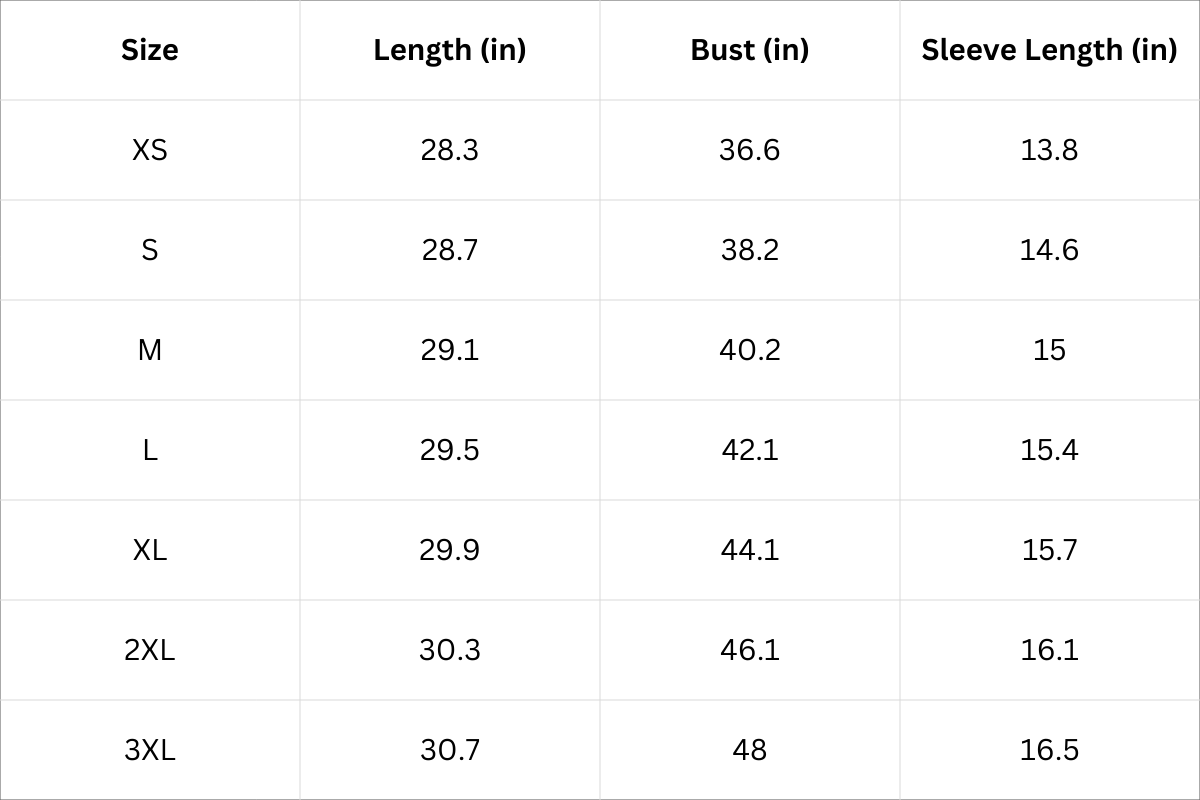 Tops Size Chart (Inches):